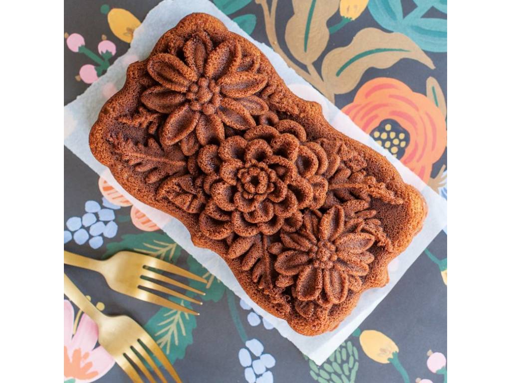 Wildflower Loaf Bundt je malá až střední forma na biskupský chlebíček z jarní a letní kolekce firmy Nordic Ware. Do detailů vyvedené květiny, které najdete venku rozkvetlé pozdě na jaře nebo na začátku léta způsobí, že iluze louky bude dokonalá, zvláště když jej svůj výtvor ještě přizdobíte polevou. Forma je uzpůsobena i pro menší trouby, snese teplotu do 200°C včetně. Má praktická madla pro snadnější manipulaci a vyklápění.