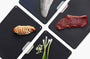 - Double-sided cutting boards with textured surfaces suitable for knives and non-slip feet
