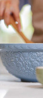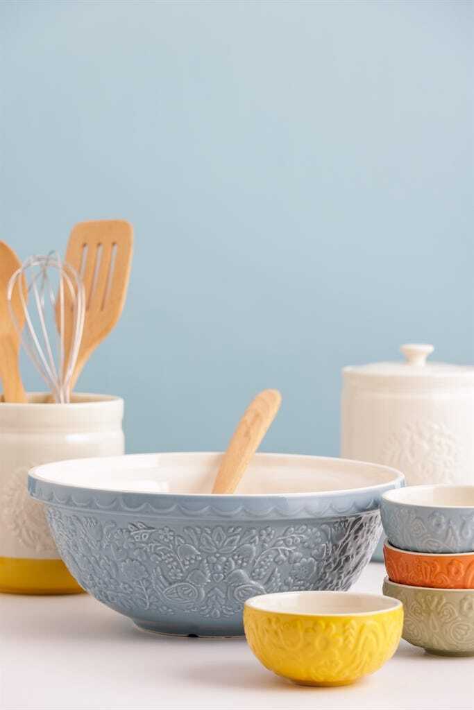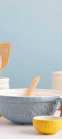 The Home To Roost collection brings rustic charm to your kitchen with a modern twist. The range of mixing bowls features embossed hen and rooster designs inspired by country life and are available in soft natural colours. The distinctive patterned embossed exterior and flared rim are designed to make it easy to hold the bowl firmly in one hand while kneading the dough with the other. Bring a little joy to your kitchen with this cheerful collection from English brand Mason Cash.