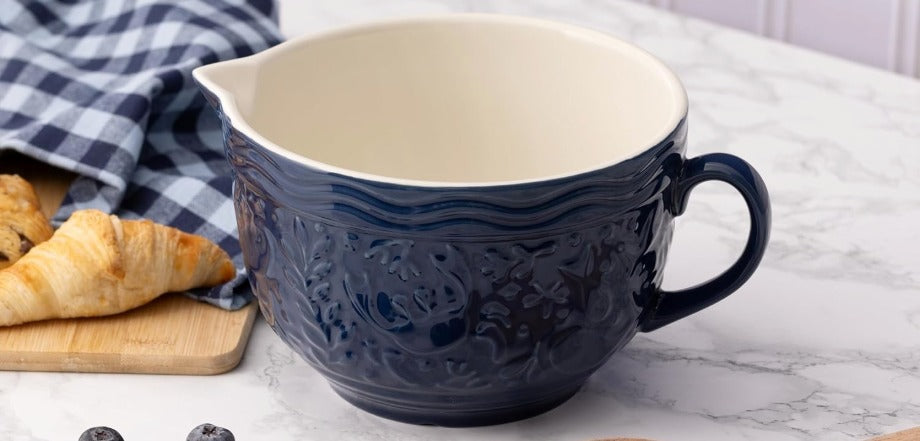 Enjoy baking with an icon whose tradition of production dates back to 1901, when the pottery Mason Cash created the first-ever pottery bowl, whose shape and design have withstood the ravages of time to become a design classic. With a large 4 litre capacity , you don't have to worry about dough that won't mix in it. The bowl is decorated with a relief depicting marine underwater plants and animals, flyingseagulls, a ship and a whale under sail to fit in with the Nautical collection concept.