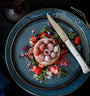 Each design set of table knives with smooth stainless steel blade contains either 4 pieces with wooden handles, made of natural or with a handle made of the new eco material VittEr®, which is also dishwasher safe. The Facette collection also includes a set of 4 smooth-bladed table knives with handles in 4 colours, each in a differentOlive wood, light ash wood, black stabilised ash wood and VittEr® in white. New for 2023 is a set of 4 knives with a slate-coloured handle in VittEr® with a micro serrated blade.