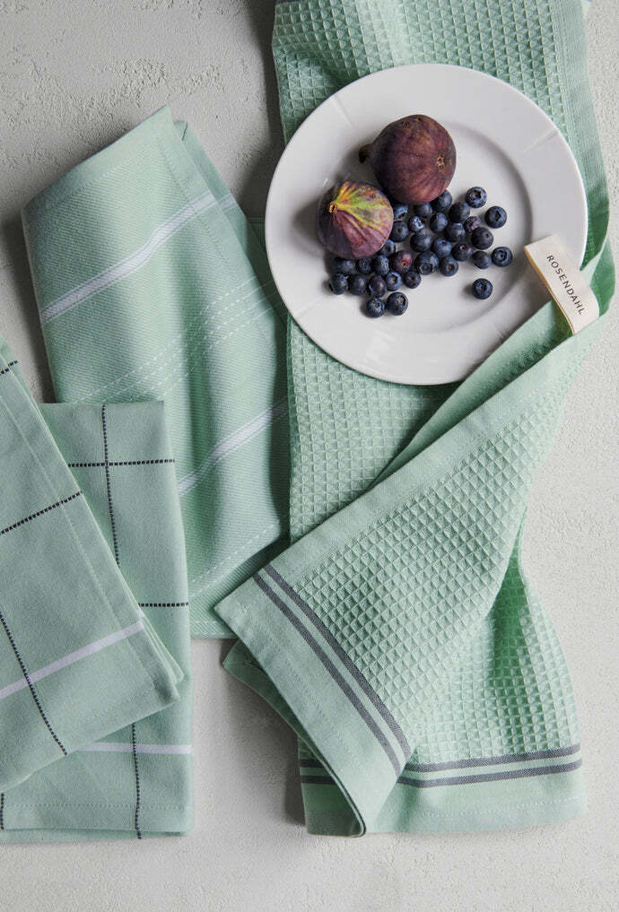 Spice up your kitchen time with colorful textiles from the Danish brand Rosendahl. They are responsibly produced and offer a stylish and timeless design. The Rosendahl Beta kitchen towel, 50x70 cm, is made in a soft mint color and, thanks to its classic and elegant woven striped motif in contrasting white, will instantly liven up any kitchen.