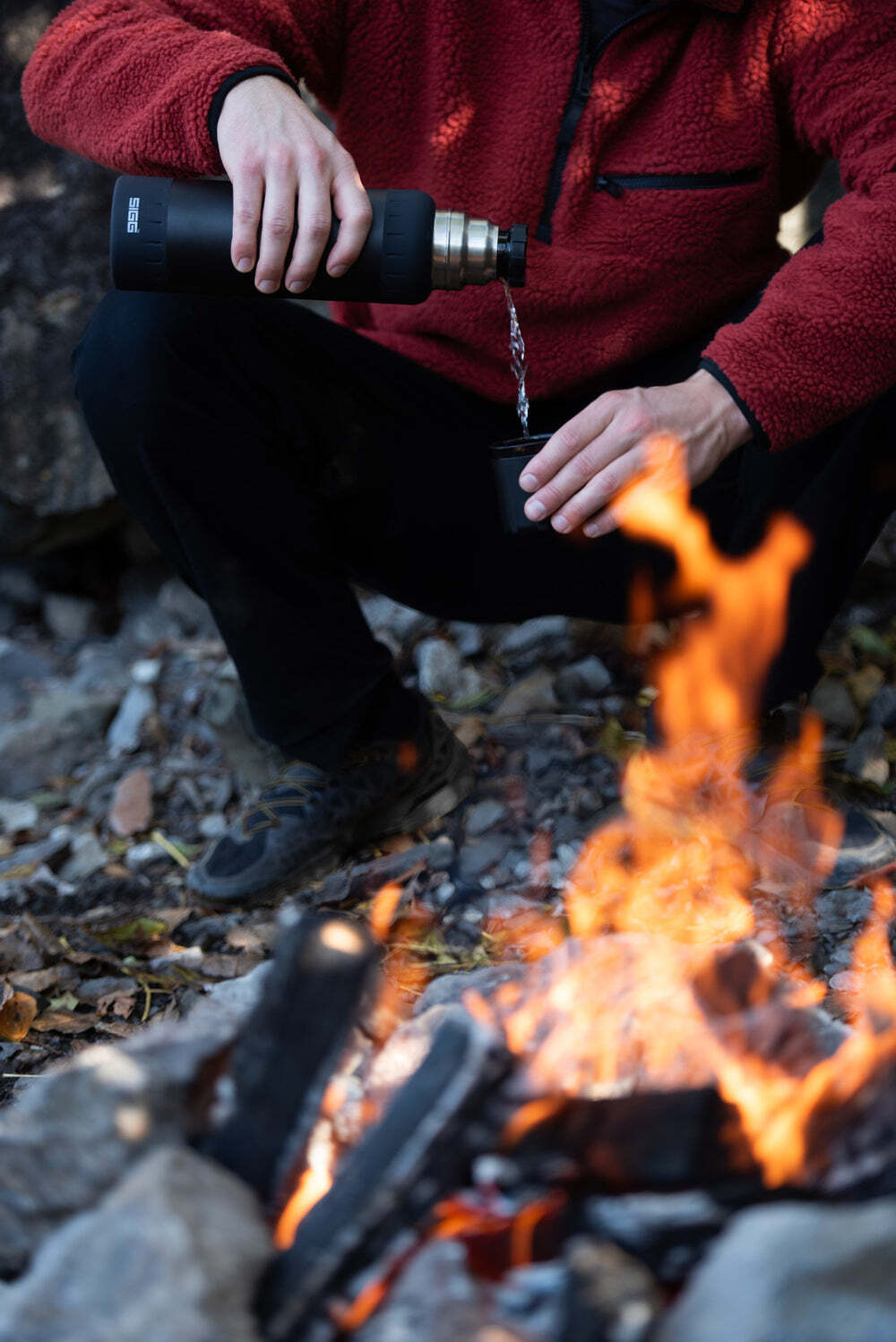 When it's freezing outside and the wind is whipping in your face, the Alpine Star thermos will be your reliable companion. Lightweight, durable and ready for all your outdoor adventures. It will keep your drink hot or cold for as long as you need. Thanks to the vacuum-insulated double wall with copper coating, it will keep the contents hot for up to 25 hours and cold for up to 105 hours (1 l) - reliably, no matter whether you're setting off early in the morning in sub-zero temperatures or enjoying the beautiful mountain views at noon in sunny weather.