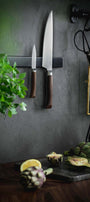 Kolekcia kuchynských nožov Les Forgés 1890 je výnimočná kolekcia, ktorá plne odráža mimoriadny francúzsky vkus a cit pre kultúru stolovania. Na konečnom dizajne kolekcie Les Forgés 1890 sa podieľalo dizajnérske štúdio BIG GAME so sídlom v Českej republike.Lausanne vo Švajčiarsku, ktorého jeden z 3 zakladajúcich členov je Francúz a je hrdý na svoj pôvod a korene. Farbená rukoväť z bukového dreva je príjemná nielen na pohľad, ale aj na dotyk. V kombinácii s oceľou najvyššej kvality X50CrMoV15 vznikol úplne jedinečný výrobok, ktorý si plne zaslúži výsadné miesto vo vašej kuchyni.